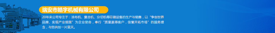 瑞安市皓宇機械有限公司是瑞安一家私營責任有限公司,注冊資金200萬,員工40余人,是具有獨立法人地位,專業(yè)生產(chǎn)定做各種非標準涂布機、復合機、印刷機、分切機、壓膜機等機械設(shè)備的制造廠。公司的機器主要用于生產(chǎn)保護膜、膠帶、雙面膠、不干膠、相紙、油畫布、汽車防爆膜、熱轉(zhuǎn)印、燙金膜、離型膜、離型紙、軟包裝印刷、軟包裝復合、軟包裝分切等各種產(chǎn)品...  [詳細]